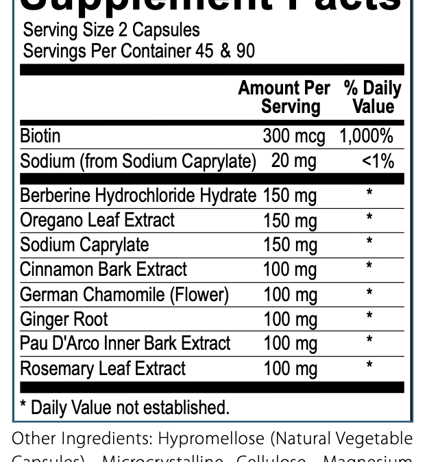 Supplement Facts for Candida Formula