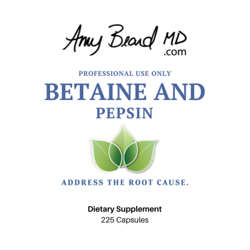 Betaine & Pepsin provides two essential components of healthy digestion: hydrochloric acid (HCl) and the digestive enzyme, pepsin. Hydrochloric acid is vital for the proper digestion of protein and the absorption of vitamins and minerals (especially vitamin B12, calcium, magnesium, copper and zinc). HCl also plays an important role in signaling the pancreas to release digestive enzymes. Pepsin is one of the first enzymes to initiate protein digestion and works in synergy with HCl to provide complete protein digestive support. Betaine & Pepsin contains 1,040 mg betaine HCl USP and 208 mg pepsin per serving.